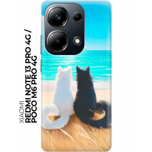 Силиконовый чехол на Xiaomi Redmi Note 13 Pro 4G / Poco M6 Pro 4G с принтом "Белая кошка и черный кот"