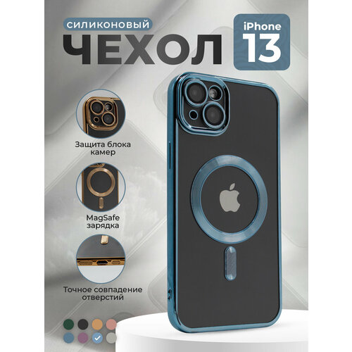 Прозрачный чехол с глянцевой рамкой для iPhone 13, MagSafe, серо-синий