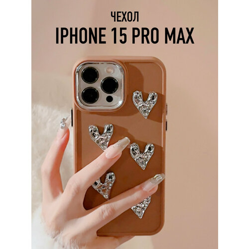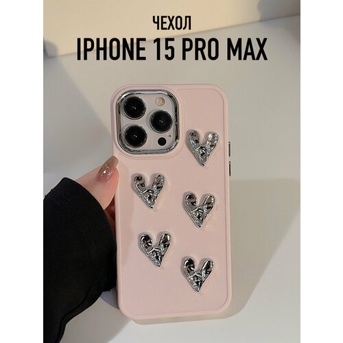 Матовый чехол на iPhone 15 Pro Max с серебристыми сердечками