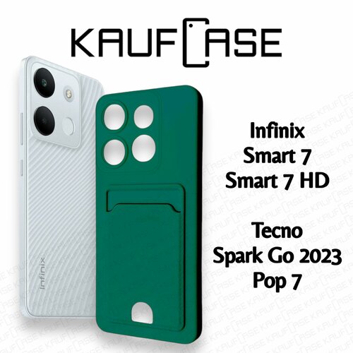 Силиконовый матовый чехол на Infinix Smart 7 (X6515) (6.6"), темно-зеленый. Карман для пластиковых карт