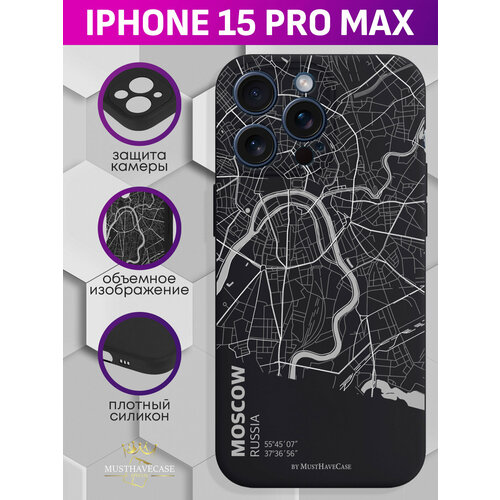 Чехол для смартфона iPhone 15 Pro Max черный силиконовый Карта Москвы