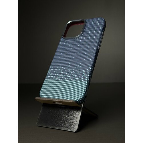 Чехол-накладка для Айфон 15 Про Макс с МагСейф из Кевлара / чехол на iPhone 15 Pro Max с MagSafe Kevlar LUXO Life+ / MOSBROS, синий с узором, карбоновый