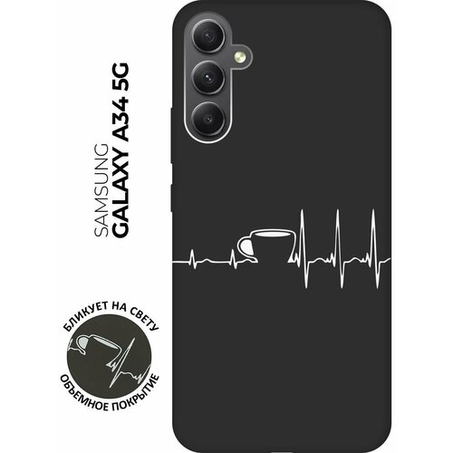 Матовый чехол Coffee Cardiogram W для Samsung Galaxy A34 5G / Самсунг А34 с 3D эффектом черный