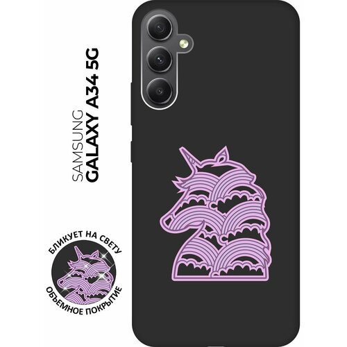 Матовый чехол Rainbow Unicorn для Samsung Galaxy A34 5G / Самсунг А34 с 3D эффектом черный