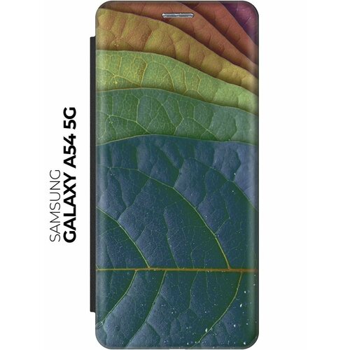 Чехол-книжка Разноцветные листочки на Samsung Galaxy A54 5G / Самсунг А54 черный