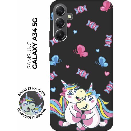 Матовый чехол Unicorns and Candies для Samsung Galaxy A34 5G / Самсунг А34 с 3D эффектом черный