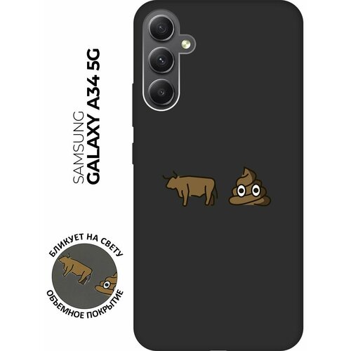 Матовый чехол Bull and Poo для Samsung Galaxy A34 5G / Самсунг А34 с 3D эффектом черный
