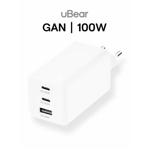 Сетевое зарядное устройство uBear Bridge, USB-C/USB A, 100 Вт, GaN с поддержкой протоколов быстрой зарядки
