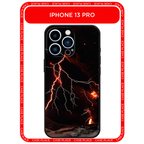 Черный матовый чехол на Apple iPhone 13 Pro / Айфон 13 Про с принтом Молния 4