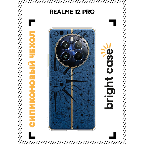 Чехол на Realme 12 Pro/Realme 12 Pro Plus / Реалми 12 Про/Реалми 12 Про Плюс с принтом Солнце и узоры, прозрачный
