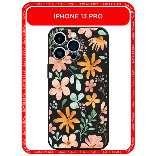 Черный матовый чехол на Apple iPhone 13 Pro / Айфон 13 Про с принтом Цветочки и стебли