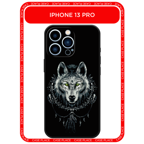 Черный матовый чехол на Apple iPhone 13 Pro / Айфон 13 Про с принтом Волк оберег