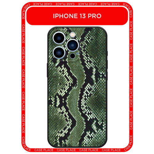 Черный матовый чехол на Apple iPhone 13 Pro / Айфон 13 Про с принтом Кожа зелёной змеи