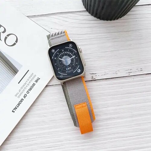 Ремешок Trail Loop Серый с оранжевой полосой, Ремешок для Apple Watch Series: 1, 2, 3, 4, SE, 5, 6, 7, 8, 9, ultra, нейлоново-тканевый 42/44/45/49 мм