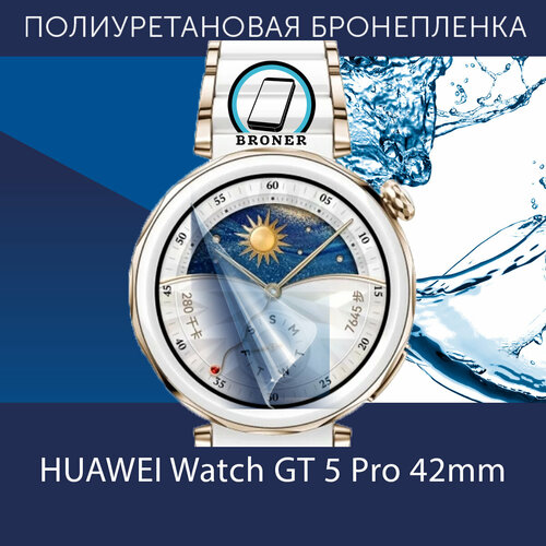 Полиуретановая бронепленка для смарт часов HUAWEI Watch GT 5 Pro 42mm / Защитная пленка на Хуавей Вотч ГТ 5 Про 42мм / Глянцевая
