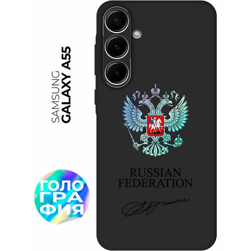 Силиконовый чехол на Samsung Galaxy A55 с принтом "Российская Федерация" матовый черный