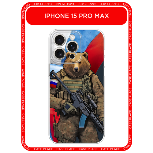 Чехол на Apple iPhone 15 Pro Max / Айфон 15 Про Макс с принтом Медведь-вояка