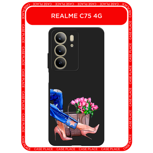 Черный матовый чехол на Realme C75 4G / Реалми C75 4G с принтом Каблучки