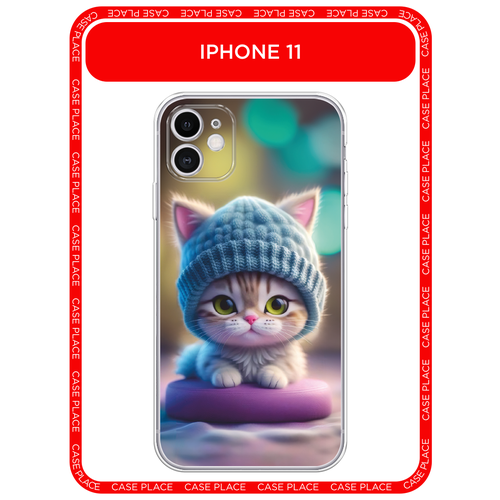 Чехол на Apple iPhone 11 / Айфон 11 с принтом Котик в голубой шапочке