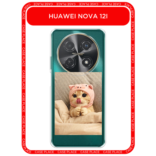 Чехол на Huawei Nova 12i/Nova 13i / Хуавей Нова 12i/Нова 13i с принтом Котик в розовой шапочке, прозрачный