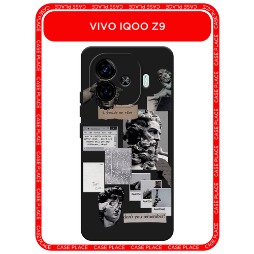 Черный матовый чехол на Vivo iQOO Z9/Z9 Turbo/Neo 10R / Виво iQOO Z9/Z9 Турбо с принтом Коллаж греческие скульптуры