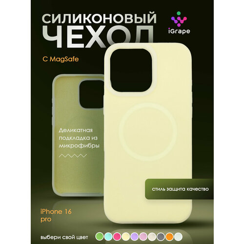 Силиконовый чехол с MagSafe для iPhone 16 Pro, iGrape (Желтый) / чехол на айфон 16 про