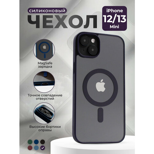 Прозрачный чехол с матовой рамкой для iPhone 13 Mini / 12 Mini, MagSafe, темно-фиолетовый