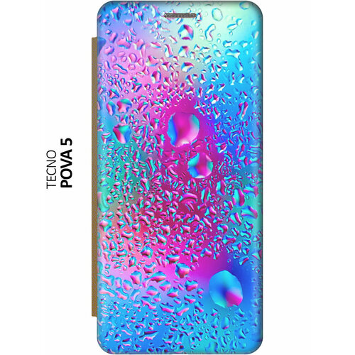 Чехол-книжка Капли на стекле на Tecno Pova 5 / Техно пова 5 золотой
