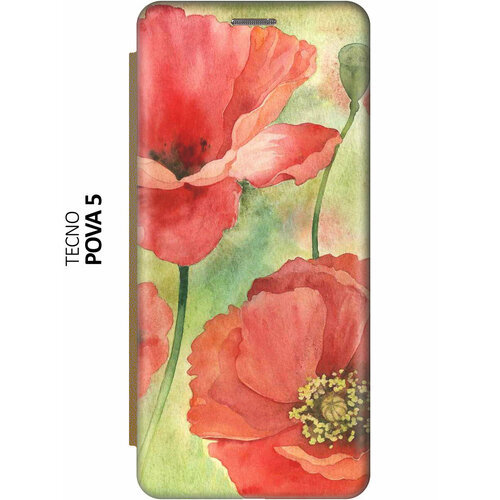 Чехол-книжка Алые маки на Tecno Pova 5 / Техно пова 5 золотой
