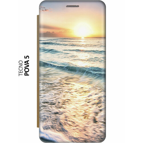 Чехол-книжка Закат на море на Tecno Pova 5 / Техно пова 5 золотой