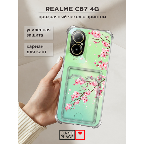 Чехол на Realme C67 4G (Реалми C67 4G) с картой и принтом "Розовая ветка сакуры"