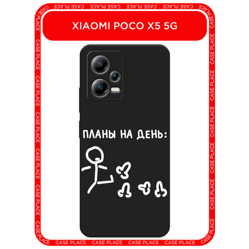Черный матовый чехол на Xiaomi Poco X5 5G / Сяоми Поко X5 5G с принтом План на день белый