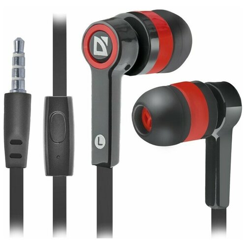 Наушники Defender Pulse 420, вакуумные, микрофон, 105дБ, 32 Ом, 3.5 мм, 1.2 м, чёрно-красные