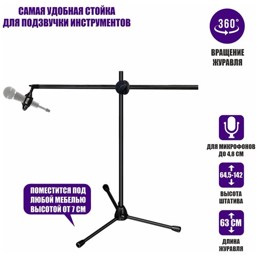 Напольная стойка MLL-03 низкая для подзвучки инструментов при игре сидя с держателем паук P1 для микрофона