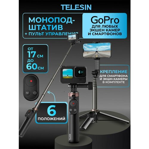 Штатив монопод селфипалка с пультом управления для телефона и экшн камер GoPro 13 12 11 10 9 MA Telesin