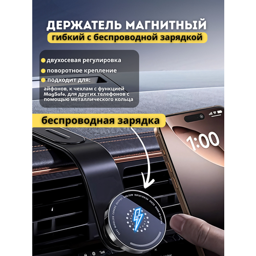 Держатель для телефона с беспроводной зарядкой в машину магнитный гибкий, автомобильный, для смартфона, для iPhone