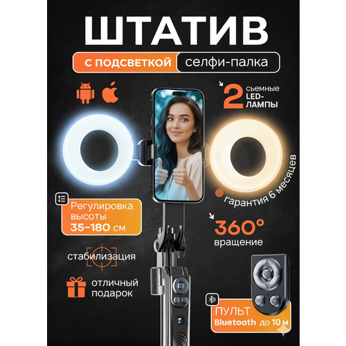 Штатив для телефона напольный с подсветкой селфи-палка монопод трипод
