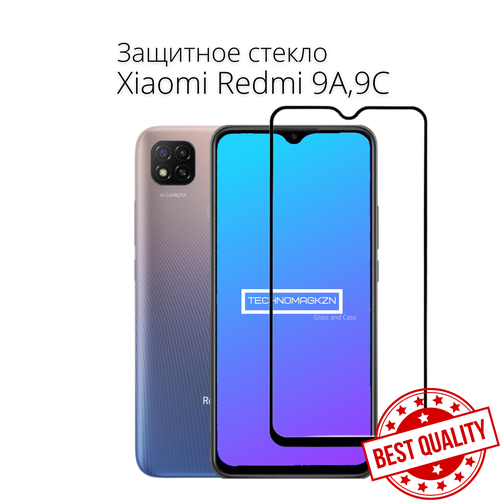 Защитное стекло для Xiaomi Redmi 9A, 9С, с черной рамкой, TECHNOMAGKZN