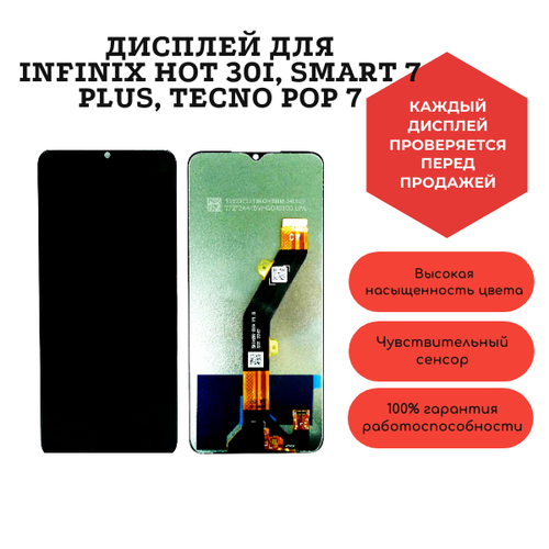 Дисплей для Infinix Hot 30i, Smart 7 Plus, Tecno Pop 7 с тачскрином 100% LCD
