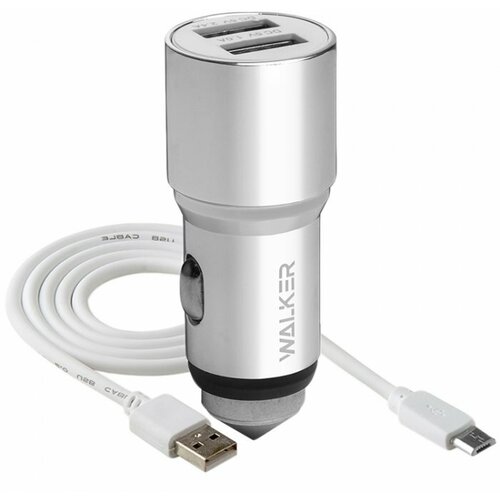 Автомобильная зарядка для телефона универсальная WALKER 2в1 WCR-21 2USB (2.1A) + кабель MicroUSB, серебренное