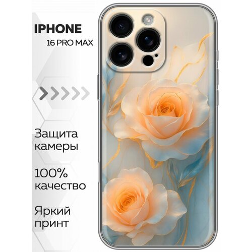 Чехол для Iphone 16 Pro Max с принтом женский с цветами (Айфон 16 Про Макс)