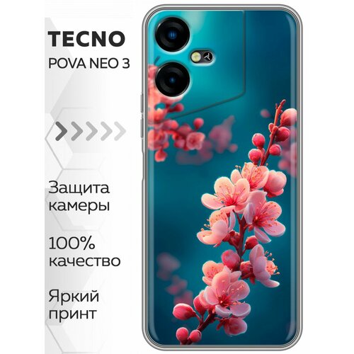 Чехол для Tecno Pova Neo 3 с принтом Женский принт цветы (Техно Пова Нео 3)