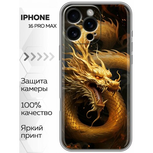 Чехол для Iphone 16 Pro Max с принтом Дракон золотой (Айфон 16 Про Макс)