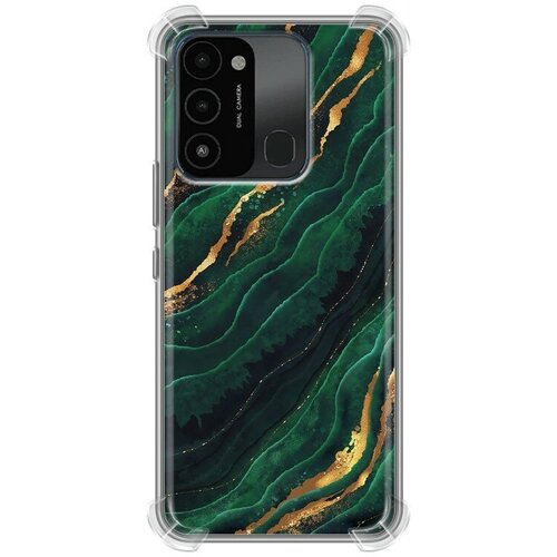 Дизайнерский силиконовый с усиленными углами чехол для Текно Спарк Го 2020 / Tecno Spark Go 2022 Мрамор зеленое золото