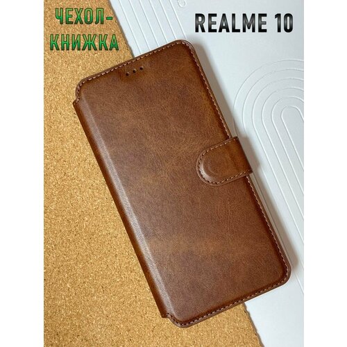 Чехол книжка для Realme 10 4G кожаный с магнитной застежкой, Реалми 10 4G с хлястиком, с функцией подставки