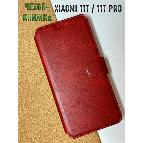 Чехол книжка для Xiaomi 11T и 11T Pro кожаный с магнитной застежкой / Сяоми 11Т и 11Т Про с хлястиком