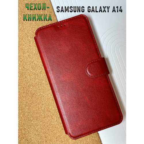 Чехол книжка для Samsung Galaxy A14 кожаный с магнитной застежкой, Самсунг Галакси А14, с функцией подставки