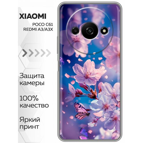 Чехол для Xiaomi Redmi A3 4G, A3x 4G, Poco C61 4G с принтом Цветы бабочки (Ксиоми Редми А3 4G, А3x 4G, Поко С61 4G)