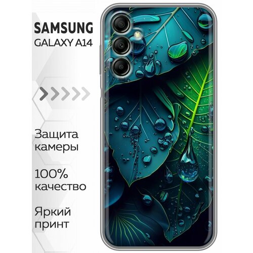 Чехол для Samsung Galaxy A14 с принтом Зеленые листья (Самсунг Галакси А14)