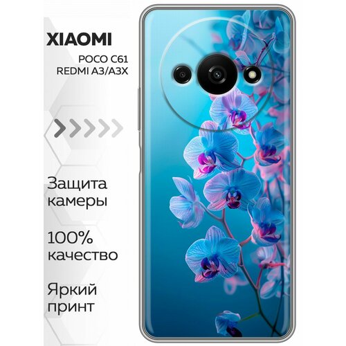 Чехол для Xiaomi Redmi A3 4G, A3x 4G, Poco C61 4G с принтом голубые орхидеи (Ксиоми Редми А3 4G, А3x 4G, Поко С61 4G)